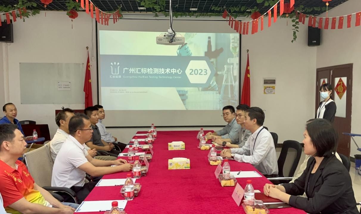 2023年4月7日下午,必赢3003no1线路检测中心党委书记邓劲松、党委副书记陈其煌带队一行16人赴广州汇标检测技术中心(以下简称“汇标检测”)开展“访企拓岗促就业”专项工作。受到副总经理兼医药事业部总监陈林明、医药事业部专家顾问贾宜军、办公室主任华丽、人力资源部经理唐大伟、医药事业部实验室经理邱禹川、医药事业部医药研发室经理陈培钦等人的热情欢迎。