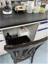 个别实验室也存在一些安全隐患问题:(1)冰箱旁堆放泡沫箱;废液瓶及实验用料瓶罐未放置相应位置(C413-2室);(2)充电器未拔(C412室);(3)部分实验室和休息室存在卫生脏乱、值日安排不到位的情况,包括:①室内较杂乱,需规整。(C419室、C413-1室);②地面较脏;室内环境较杂乱;休息室存放较多烹饪调料;未安排卫生值日表(C412室);③值日表时间未更新(C413室)。