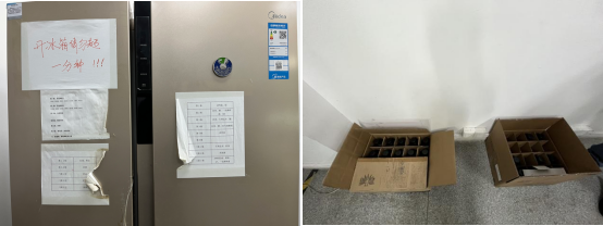 C414整改成效显著,物品摆放规范。(左图为整改前,右图为整改后)