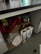 C312室环境较杂乱,物品堆积存放;实验室放置生活物品和食物