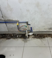 A301室管道电线裸露,地板污垢较严重;A310室冰箱无清单,实验服发黄发霉