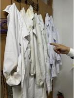 另外部分实验室存在一些卫生脏乱、值日安排未到位的情况,如:①地板污垢较严重 (A301室);②室内杂物较多,须及时规整(A304-1室);③实验服发黄发霉,未能及时清洗更换(A310室);④值日表时间未及时更新(A201-3室、A310室)。