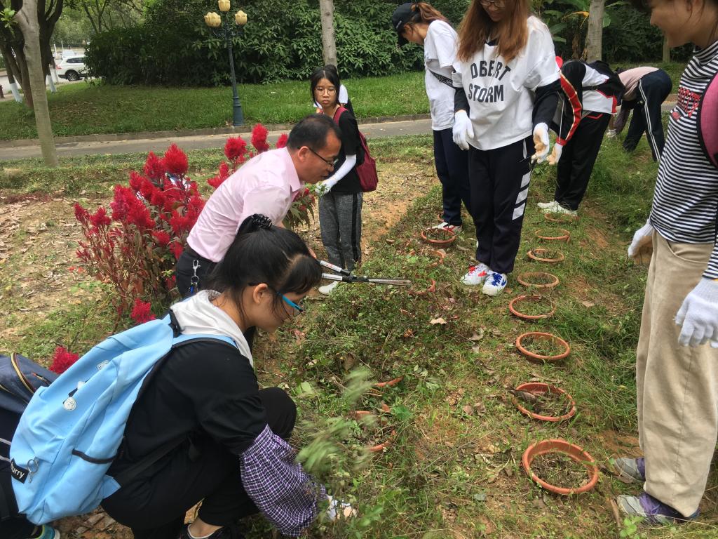 在这个药化、美化、文化的劳动育人示范基地,学生们在专任老师和专业工人的指导下,开展取样、松土、种植、除草、施肥、养护等工作,在受教育的同时,用劳动汗水把基地浇灌得更加美丽。