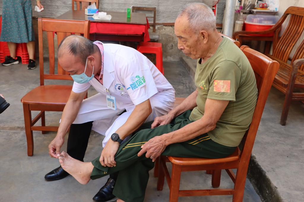 鲐背之年的沈金水老人,正是电影《长津湖》钢七连英雄原型。日前学院三下乡队伍拜访老人,发现其多年来苦受皮肤问题折磨,了解情况后,学院与一附院取得联系,得到大力支持,旋即共同组织了本次义诊。