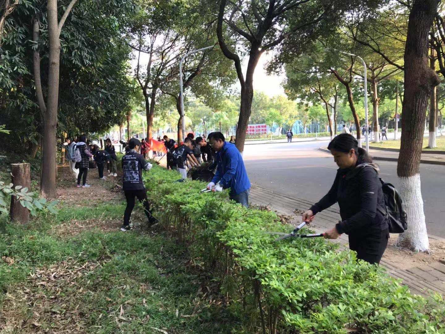 在开始前,班委对此次劳动任务进行了分工,划定负责的区域,分发手套袖套、镰刀扫把等劳动工具,提前在进行了驱虫蛇工作。劳动过程中,在邓劲松书记和辅导员老师的带领下,同学们倾情投入,撸起袖子干得热火朝天。山坡上的干枯的树枝树干被清理出来,小径丛生的杂草被修剪,上山石阶上掉落的枯叶也被清扫干净。期间,中药学教研室李海燕老师路过,被大家的劳动热情感染,也加入了劳动队伍!