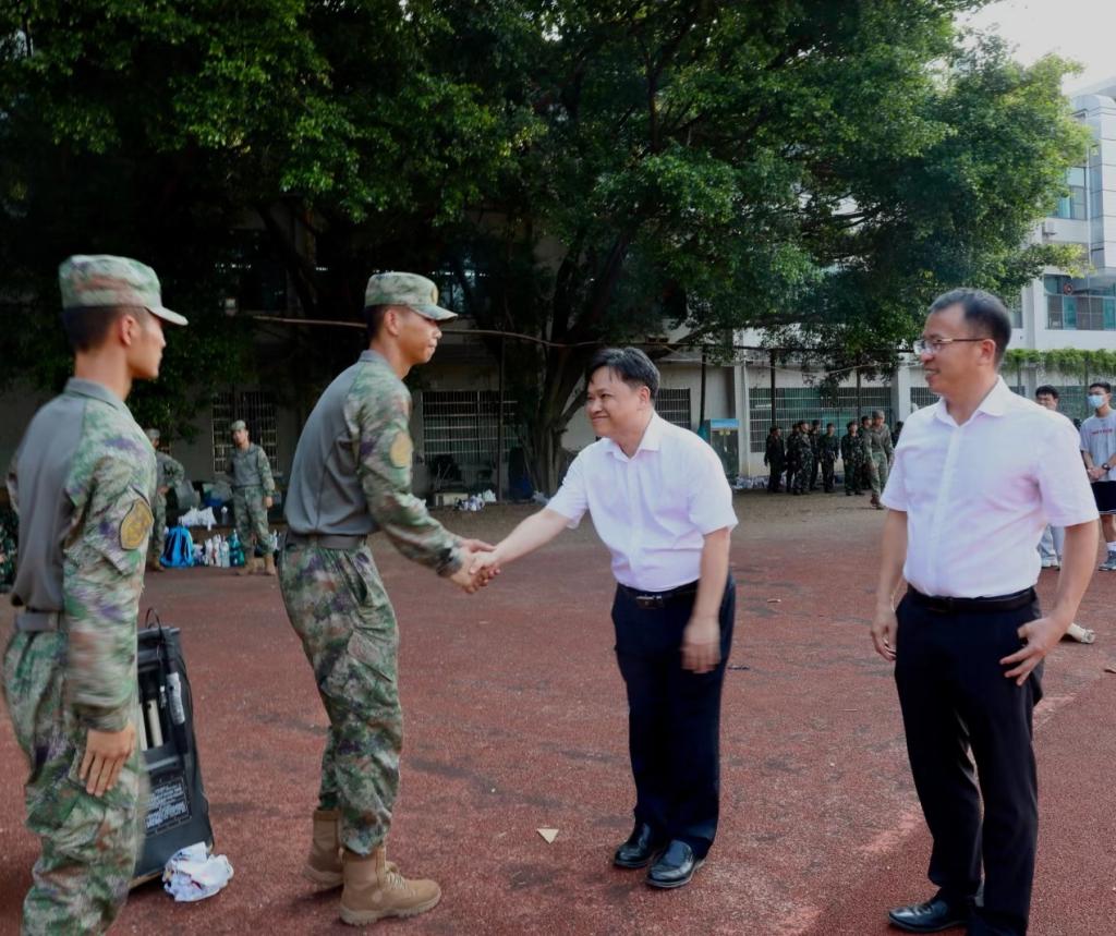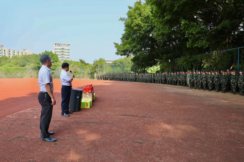 同时,詹若挺院长一行也对参训学生进行了亲切的慰问。詹院长指出,希望同学们能通过军训的经历磨练自己的意志和促进个人的成长并运用到以后的学习生活中,同时也希望同学们能发扬艰苦奋斗和团结友爱的精神,以最佳的精神风貌迎接大学新的学习和生活!